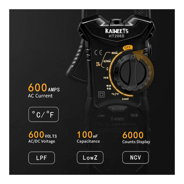 • Εύρος μέτρησης έως 600V AC/DC και 600A AC